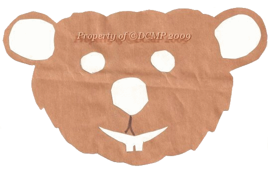 Shown here was a groundhog made with paper from a brown paper bag, plain white paper, and a marker. Cut out the face using a brown paper bag, or brown construction paper (don't have that? Use paint, marker or crayons to color in the face),, then cut out the inside of the ears, eyes, nose and mouth and glue them on the face. Use marker to draw the little lines from nose to mouth. He even looks a lot cuter in person, then in this scanned pic :) |